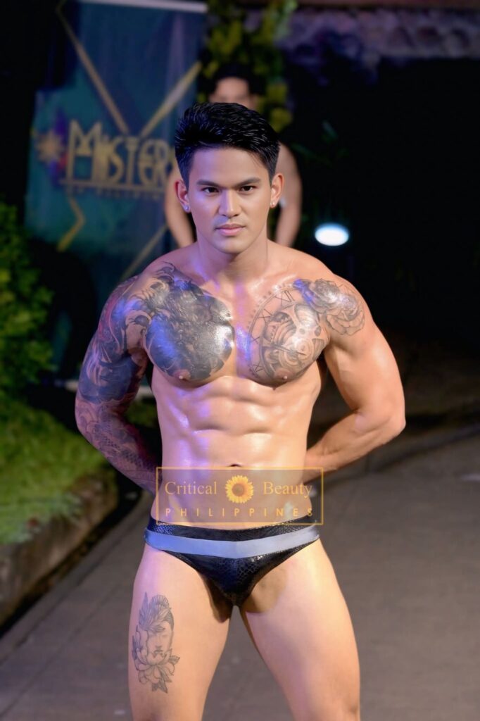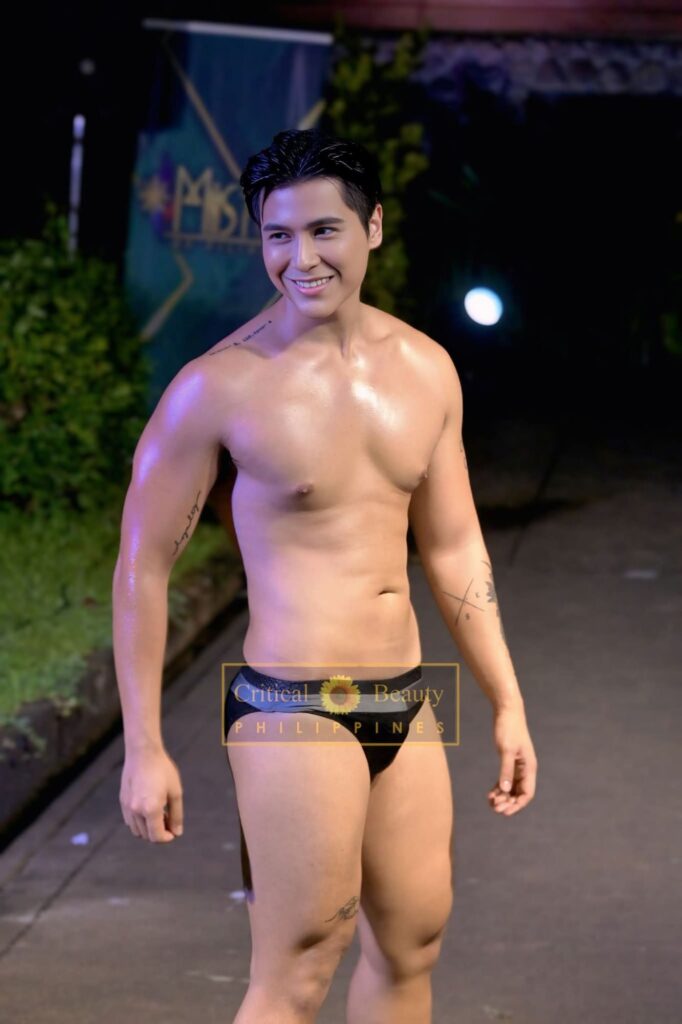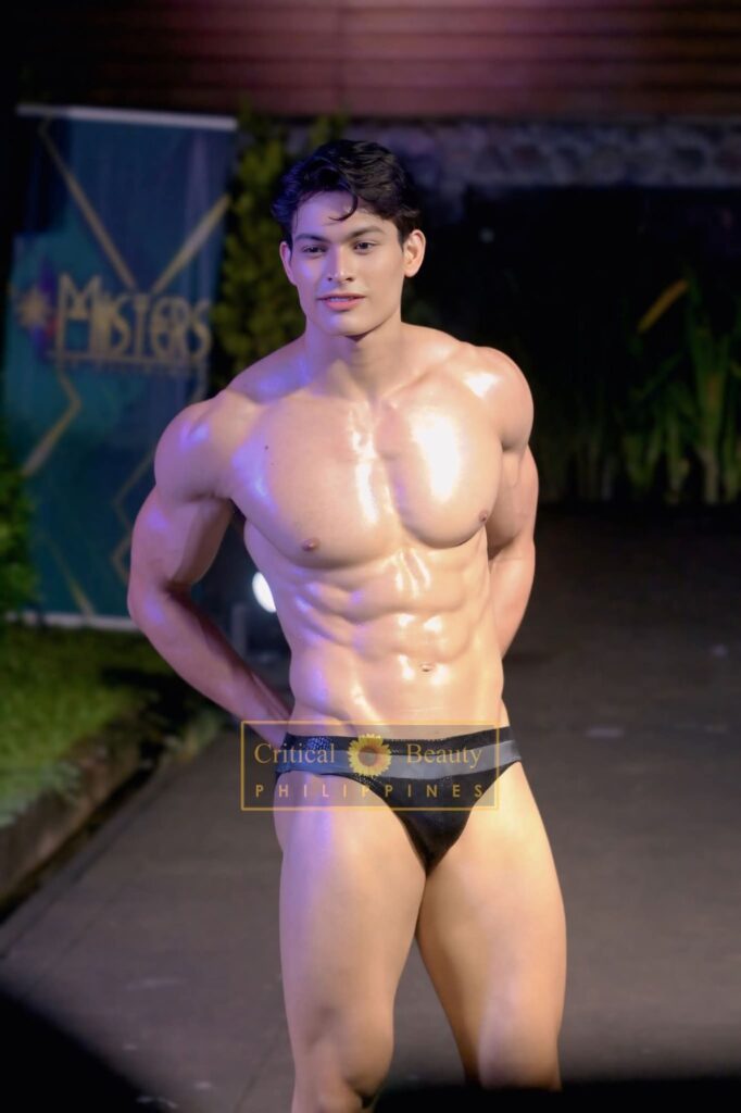 Top 10 in Swimwear included John Nietzche Hipolito (Bulacan Province), Miguel Cayabyab (Zambales), Marck Marasigan (Lipa City, Batangas), Calix Kayden Esguerra (Imus, Cavite), Oliver Eugen Kretz (Puerto Princesa), Juan Carlos Lopez (Bataan), Daniel Ganac (Davao City), Jacob Kier Gomez (Tarlac Province), Krishna Yasser Rodriguez (Pampanga), and Kristzan Karlo Delos Santos (Cavite).